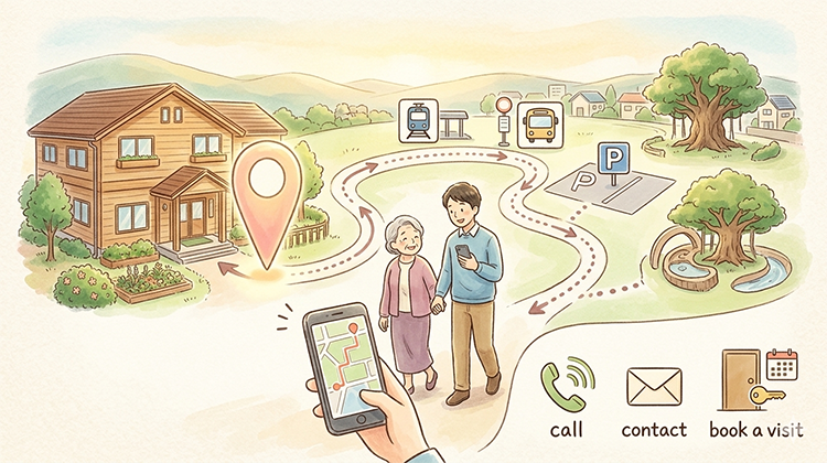 地図だけでなく、施設周辺の情報も合わせて掲載すると親切です。駅やバス停からのルート、駐車場の場所、近隣の目印などがあると訪問者は安心します。