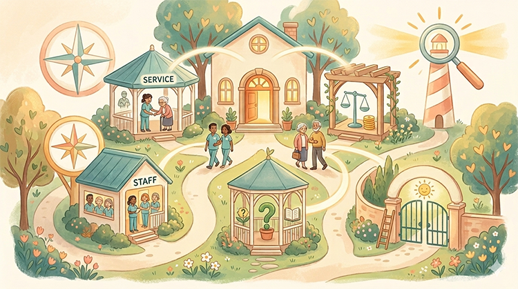 例えば、サービス内容・料金・職員紹介などがバラバラに書かれていると、見る人にも検索にも伝わりにくくなります。